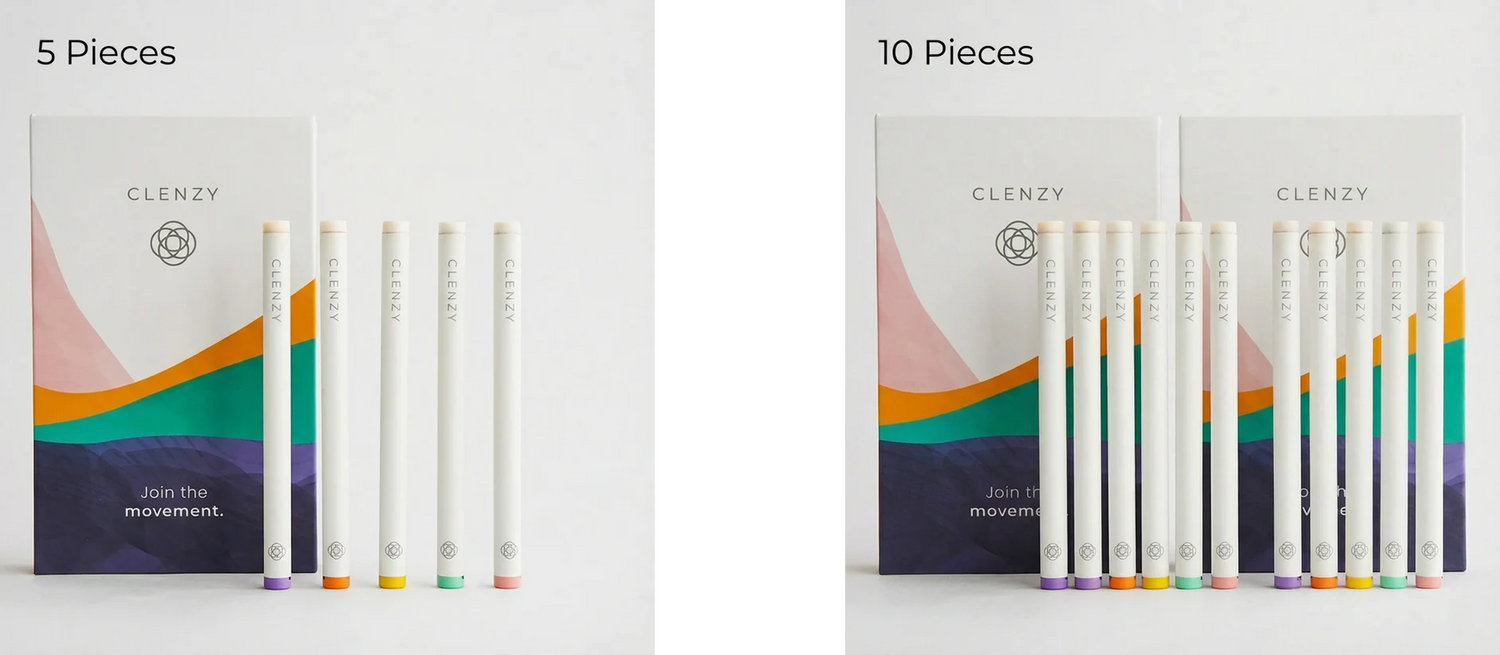 The Clenzy "Starter Pack" (5-Pack) costs $60 and lasts the average user 3–4 weeks.